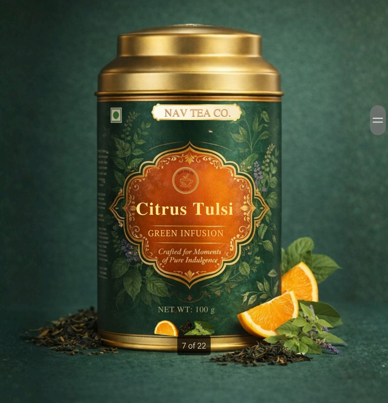 - Blend of green tea, tulsi & citrus peels