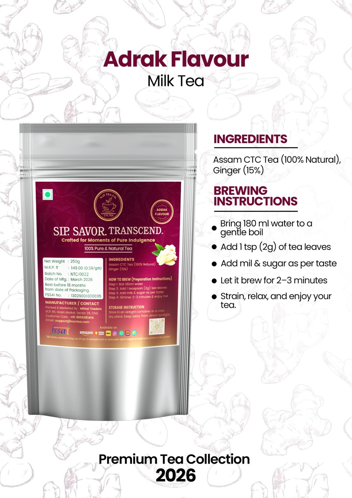 Adrak Flavour Milk Tea (250g) Strong Assam CTC Ginger Tea | Boost Digestion & Immunity